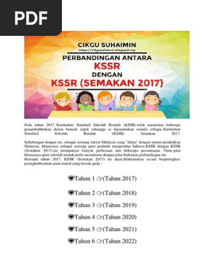 Berdasarkan jadual di atas, terdapat 1 persamaan dan 8 perbezaan antara kssr dengan kssr (semakan 2017).