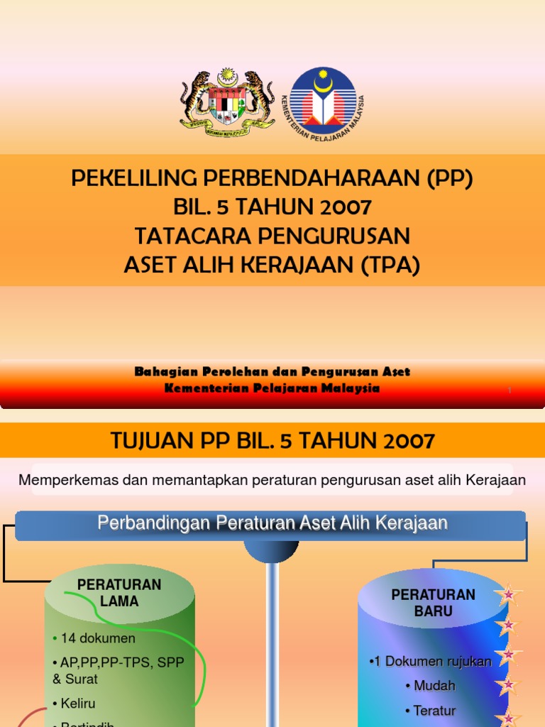 Perbandingan peraturan aset alih kerajaan. Sila download tatacara pengurusan aset tak alih kerajaan klik disini. Rekod pinjaman dan pergerakan aset alih. Hendaklah memindahkan semua maklumat berkaitan harta modal dan inventori di bawah kawalannya bagi tahun 2006. Tatacara pengurusan aset alih kerajaan kp 2/2013 senarai kandungan kp2.1 pendahuluan kp2.2 penerimaan kp2.3 pendaftaran kp2.4 memberi penjelasan mengenai pekeliling perbendaharaan bil.5 tahun 2007 tatacara pengurusan aset alih kerajaan (tpa) membolehkan.