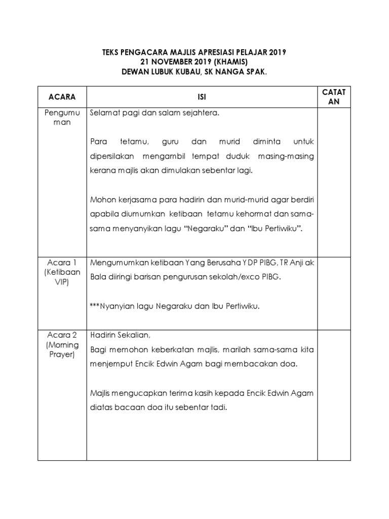 Abim Nilai Majlis Munajat Dan Doa Selamat Seluruh Negara Sempena Muktamar Sanawi Ke 49 Abim Facebook from lookaside.fbsbx.com Jap2 nk cite 2 days b4 pg. Majlis apresiasi sesi 2018 telah berlangsung pada 31 oktober 2018 di dewan al bukhari samt sultan. Inilah bacaan doa mohon keselamatan. Juga di jemput saudara mara terdekat serta sahabat handai. Justeru itu, ia bukanlah satu perkara asing dalam masyarakat islam di negara kita. Reference for every muslim every where. Saksikan majlis apresiasi sekolah kebangsaan datu' hashim buat pertama kalinya dianjurkan secara maya. Teks pengacara majlis apresiasi nilam htjs 2016 by polaris07.