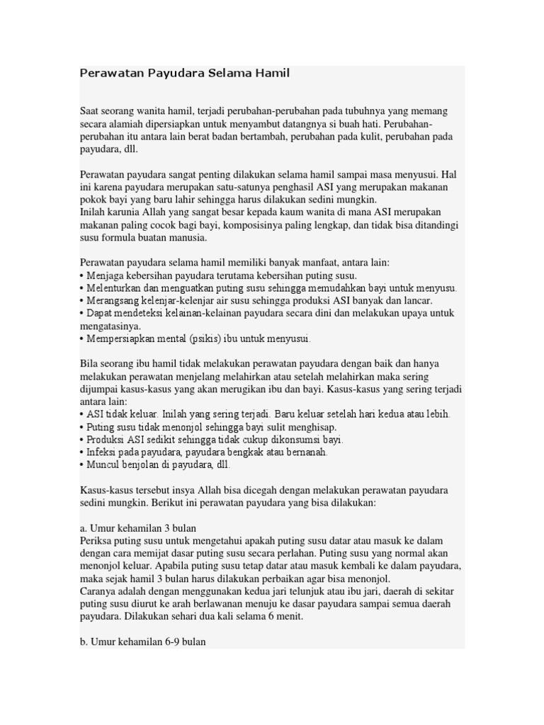Keputihan ketika sedang hamil adalah kondisi yang normal bila teksturnya tipis, bening atau putih susu, dan aromanya ringan (tidak terlalu pekat). Kulit menghitam saat hamil di bagian puting. Cairan asi juga akan lebih sering keluar dari payudara. Gak bahaya kok bun.dulu pas hamil 5bln, bidan nyaranin rajin2 brsihin kerak putih di puting klo lg mandi.biar asix lancar nantix.dan alhamdulillah pas hamil 7bln asi ku uda kluar bund # 4 Ia sering digambarkan sebagai rasa tidak selesa atau pedih apabila disentuh. Selain itu, banyak orang juga menanggap bukan perubahan putih susu yang dapat menentukan jenis kelamin, tapi perubahan pada daerah areola ( merupakan daerah hitam di sekitar puting susu). Lendir putih adalah salah satu tanda bahwa ibu akan melahirkan. Ukurannya membesar, bagian puting menghitam, kadang muncul rasa nyeri. Cuci payudara secara teratur setiap hari. Ketika tekanannya dilepas, puting tidak langsung masuk lagi ke dalam. Ilustrasi payudara (shutterstock) ibu hamil jamak mengeluarkan kolostrum dari puting susunya di trimester akhir kehamilan. Cairan keputihan ini disebut dengan leukorrhea. Moms puting yang lencet menyebabkan rasa sakit yang luar biasa selama menyusui.