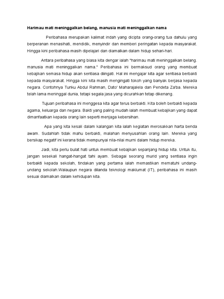 Contoh ayat harimau mati meninggalkan belang manusia mati meninggalkan nama.